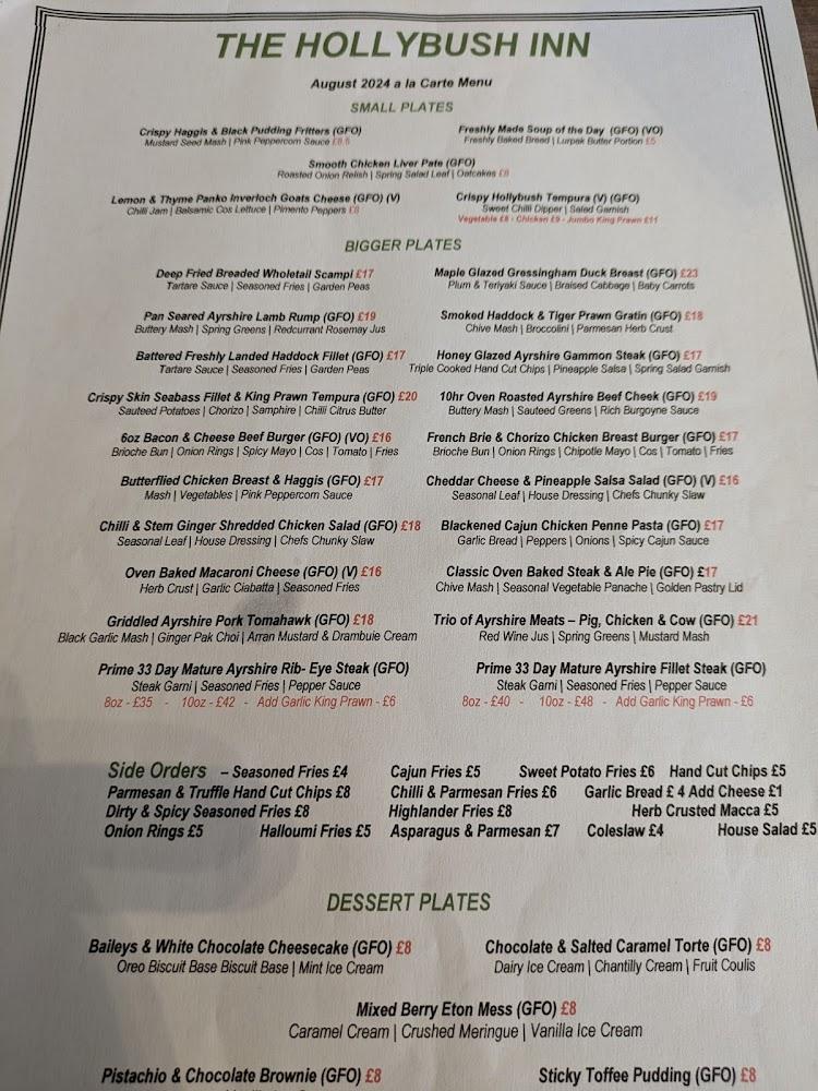 Nestled in the picturesque Ayrshire countryside on the A713, Hollybush Inn stands as a hidden treasure for locals and tourists alike. This inviting establishment boasts a relaxed and cozy atmosphere, making it perfect for gathering with friends or family. The décor combines rustic charm with modern comfort, featuring a bright conservatory that showcases stunning views of lush fields. The inn is wheelchair-accessible, ensuring that everyone can enjoy a meal here. Holistically designed, it welcomes groups, couples, and solo diners, creating a friendly environment that encourages conversation and connection. Located just a short drive from Ayr, it’s an excellent stop for anyone exploring the area. Parking is convenient, with both street and lot options available, making it an easy destination to drop by anytime. Hollybush Inn is not just a place to eat; it’s a community hub where celebrations like weddings and anniversaries unfold, making lasting memories in a charming setting.